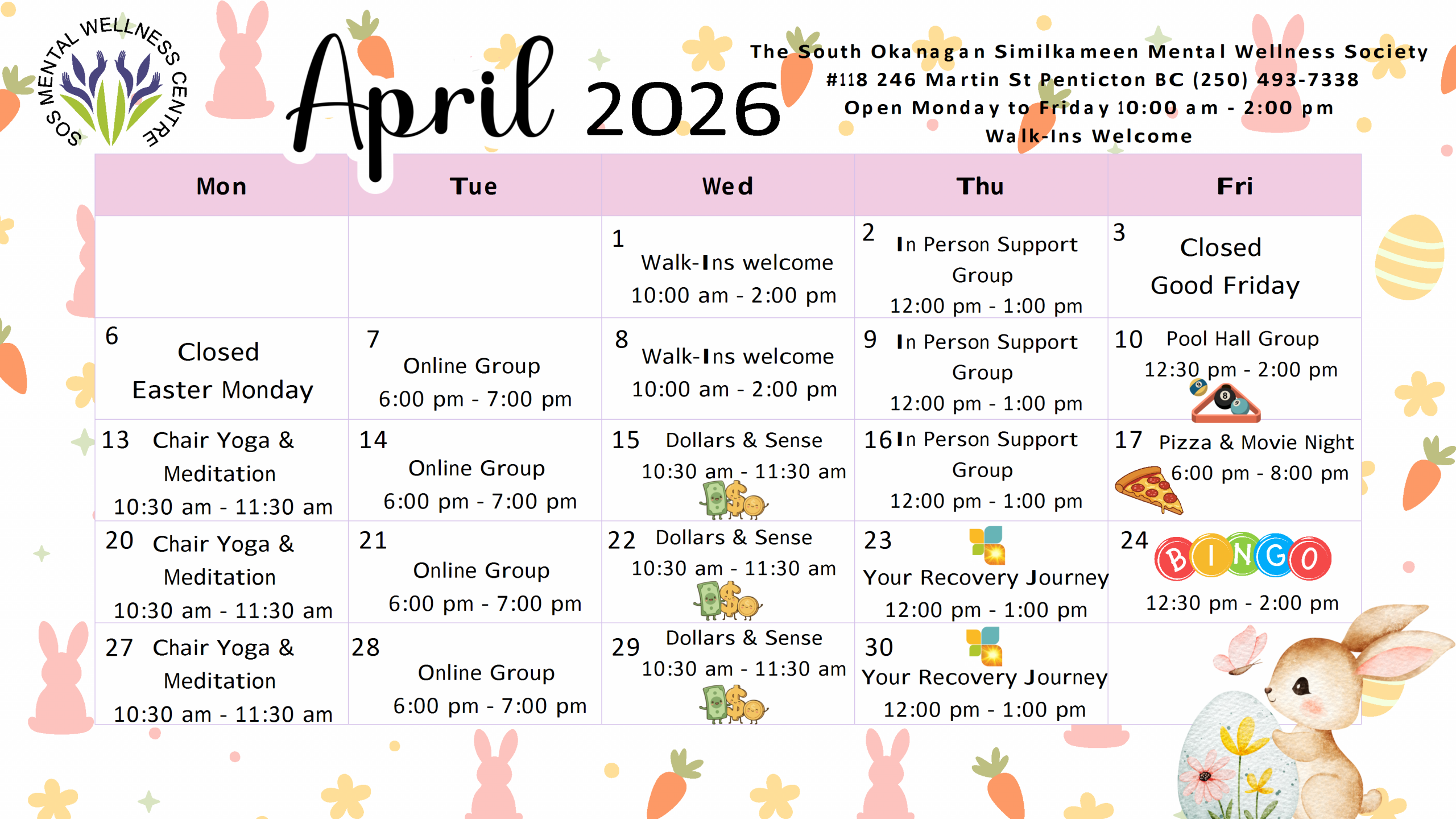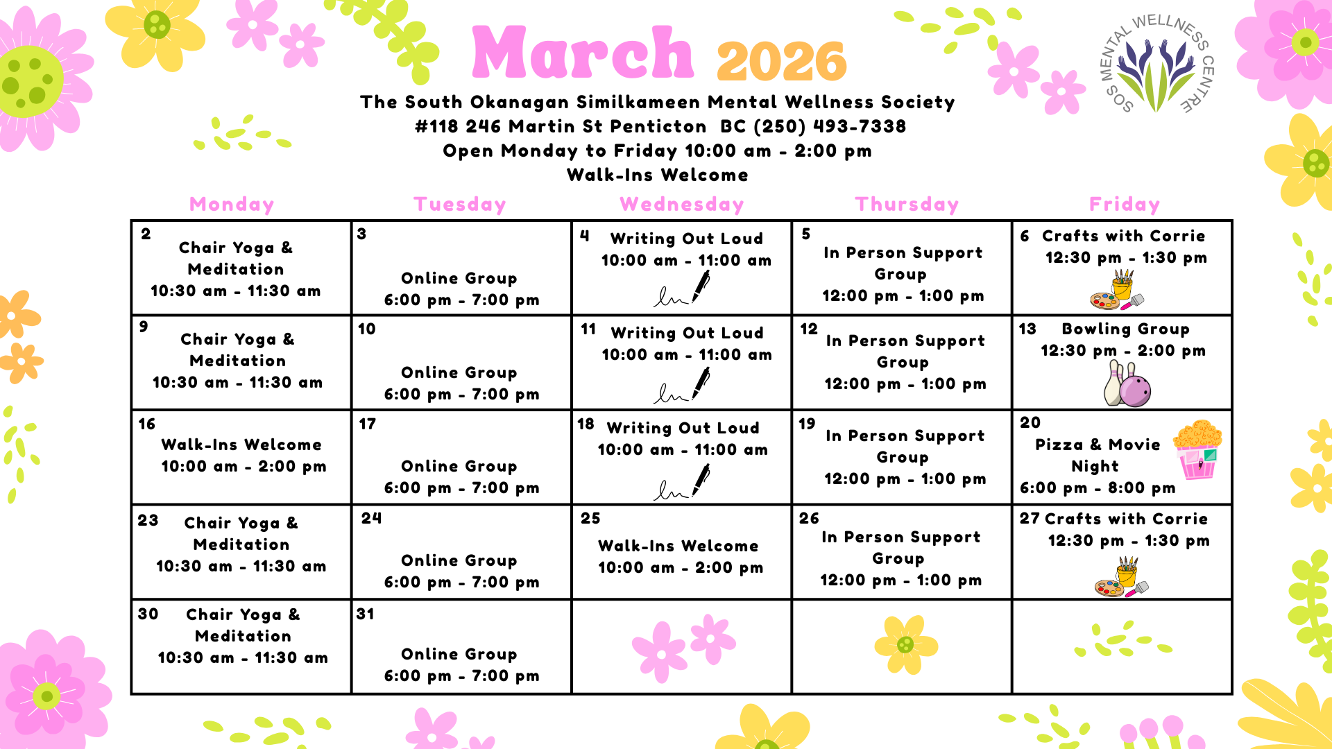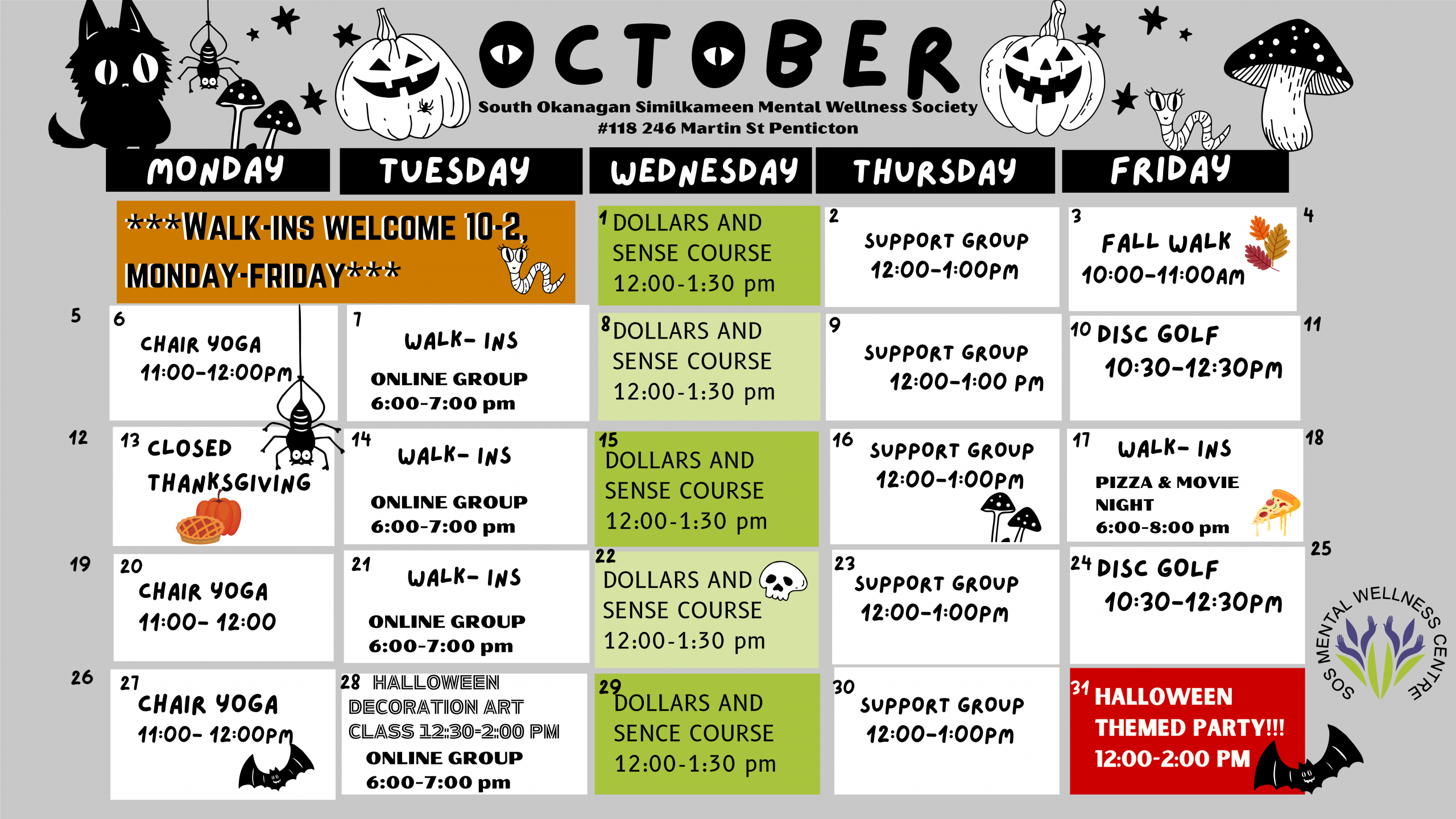 Monthly Calendar of Events